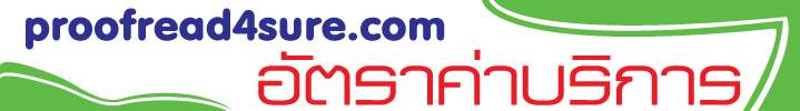 Proofread4sure.com ยินดีให้บริการงานตรวจแก้ภาษาอังกฤษสำหรับงานทุกประเภท โดยเฉพาะงานวิชาการ ทั้งนี้เรามี English Native Proofreaders and Editors ที่มีความเชี่ยวชาญในการปรับแก้ภาษาอังกฤษ โดยอัตราค่าบริการจะเป็นราคาที่สมเหตุสมผลและต่ำกว่าผู้ให้บริการในต่างประเทศ แต่คุณภาพของงานเทียบเท่ากัน เรามีอัตราค่าบริการคิดเป็นสองแบบคือ