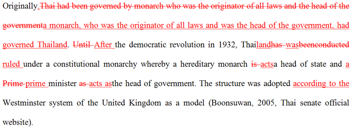 เป็นการตรวจโดยละเอียดและแก้ไขเรียบเรียงใหม่ ให้เหมือนเจ้าของภาษาเขียนเอง
